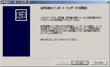 4. 「証明書のインポートウィザード」が表示されます。「次へ」をクリックします。