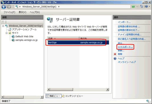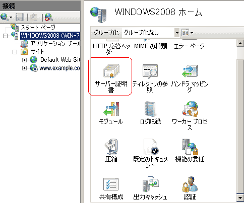 SSL証明書のインストール手順 IIS7.0 IIS7.5