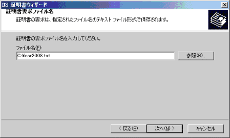 - 生成するCSRのファイル名を入力する画面が表示されます。