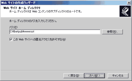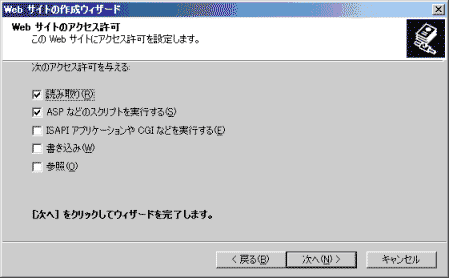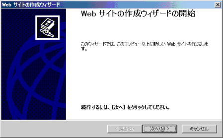 - [Webサイトの作成ウィザード]が表示されますので、[次へ]をクリックします。