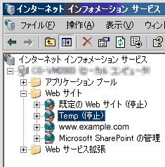 [完了]をクリックします。 - 仮想サイト「Temp」が作成されます。
