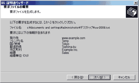そのため、更新作業用の仮想サイトを作成したうえで、更新作業用サイトのCSRとして、更新用のCSRを作成する必要があります。